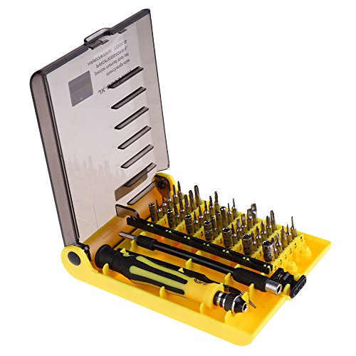 - 45pc in 1 precision screw driver set includes 42 insert bits, 2pc Plastic Handle and 1pc Rod.
