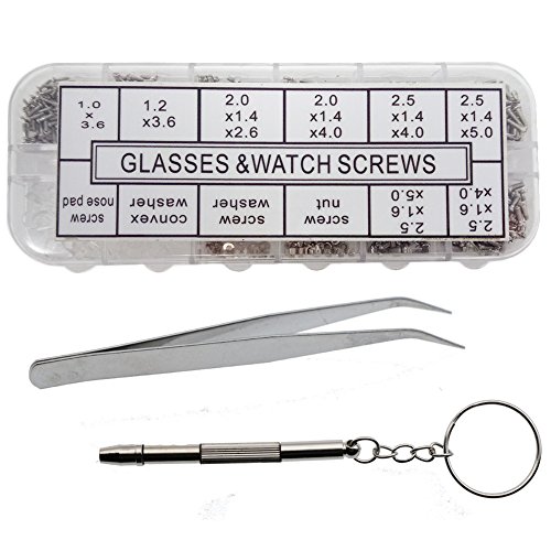 - Package contents: 1100 x Tinys Eyeglasses Screws Nuts (with case),+5 pairs of nose pads,1 x Screwdriver 1 x Tweezer